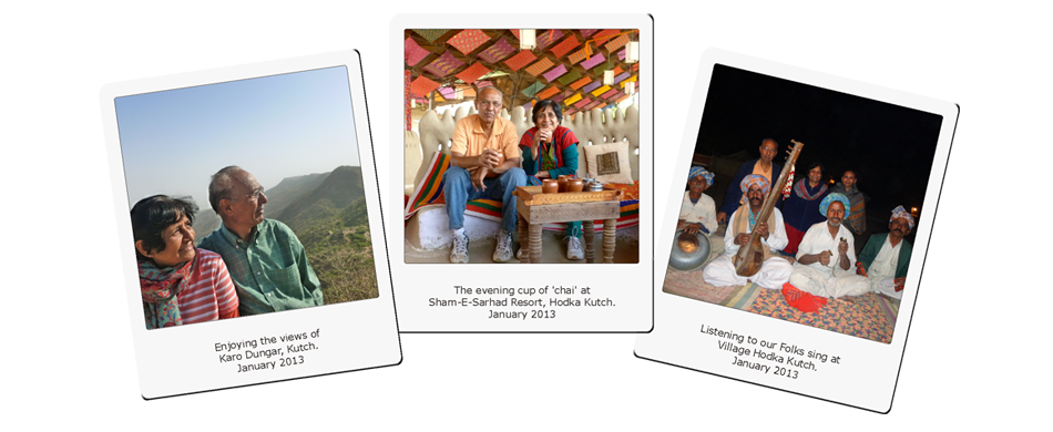 There was so much to experience on all fronts – sight-seeing, monuments, people, food and the experiences shared by Rashmi. We realized that Kutch is not about Rann Festival alone. She also brought in the right people to enhance our experience. The Art, the People and the Social Organisations working with the local populace - all contribute to this GRAND - COLOURFUL - LIVELY festival of life in Kutch.