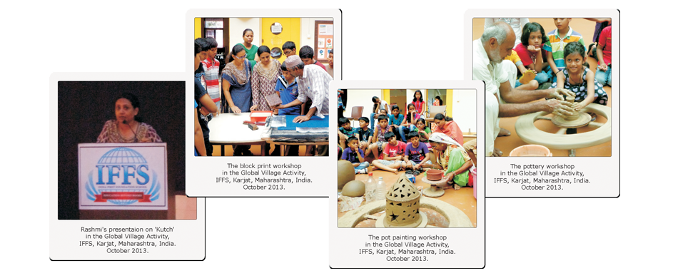 We take this opportunity to thank Rashmi and her team for acceding to our request and conducting Global Village Activity & showcasing Kutch & its arts, in India First Foundation School at Karjat, from October 27 to 30, 2013.