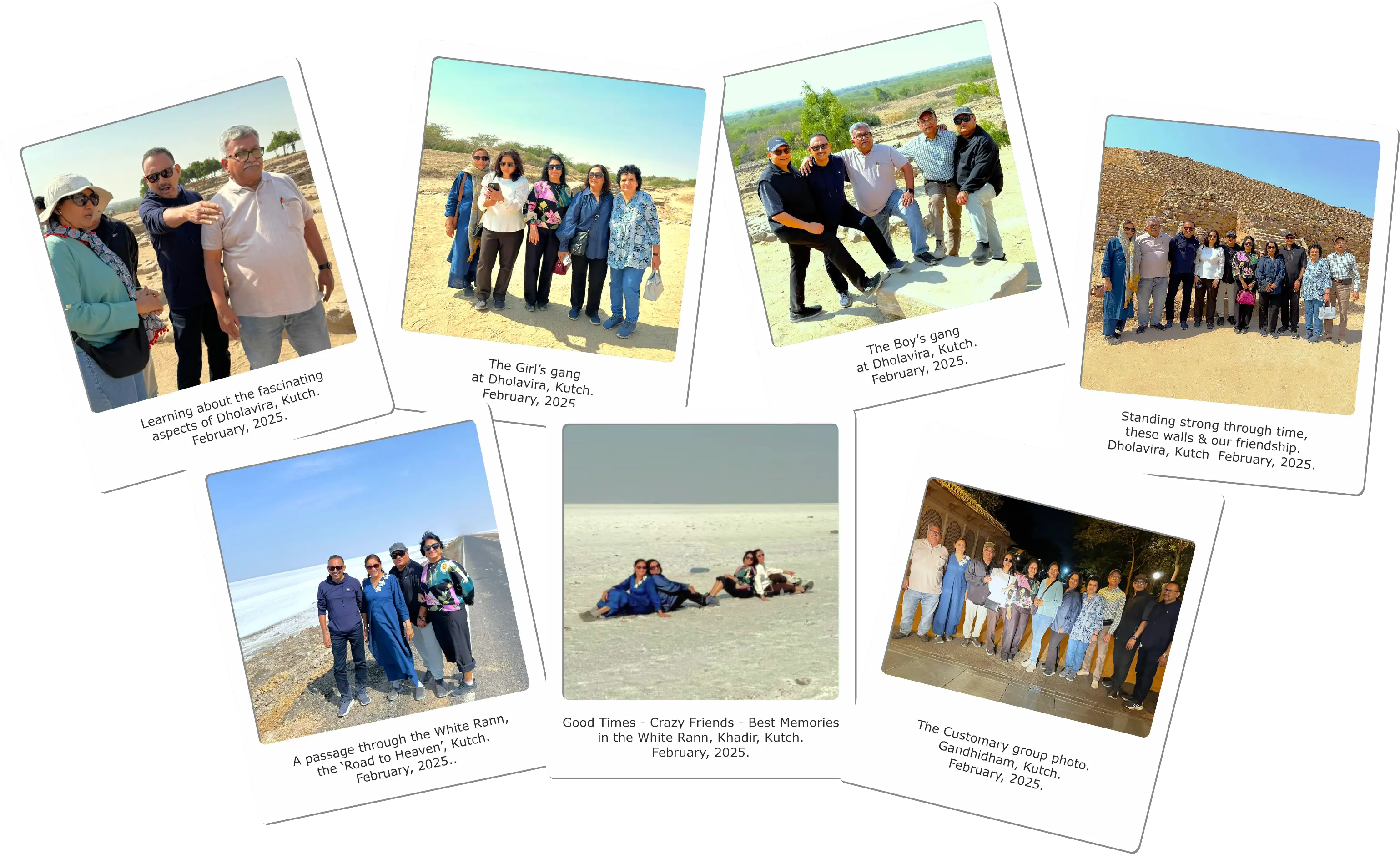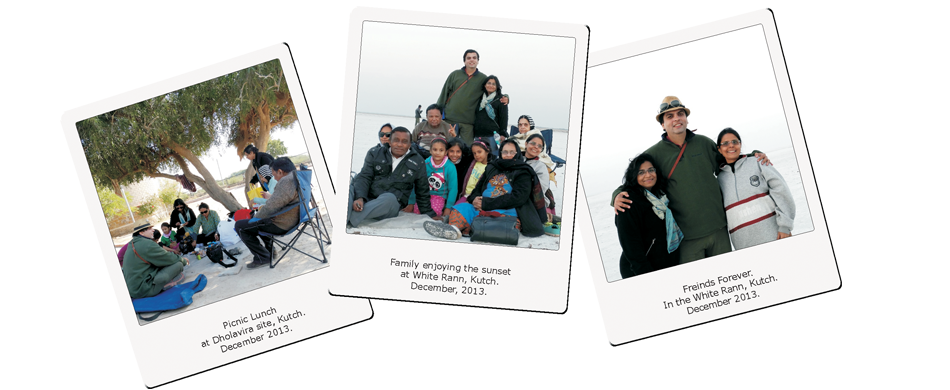 Far beyond the formal tour description, there are innumerable moments where Rashmi and Hemang have touched our hearts ~ Even before we got off the train, Rashmi was standing outside the train coach with a porter at 5:30 am in the morning at Gandhidham station, she would run around searching for ice-creams for little one and Jain food for mummy, the girls jumped all around Hemang giving different poses for photographs at Rann, Hemang carried folding chairs in Rann for the elders who could not sit down and saw to it that everyone enjoys the Sunset, they packed picnic-food for th e Dholavira visit, Rashmi called up the hotel and ensured that a forgotten doll is kept properly to be picked up later and courier back to the young one ..... and the list can go on....
