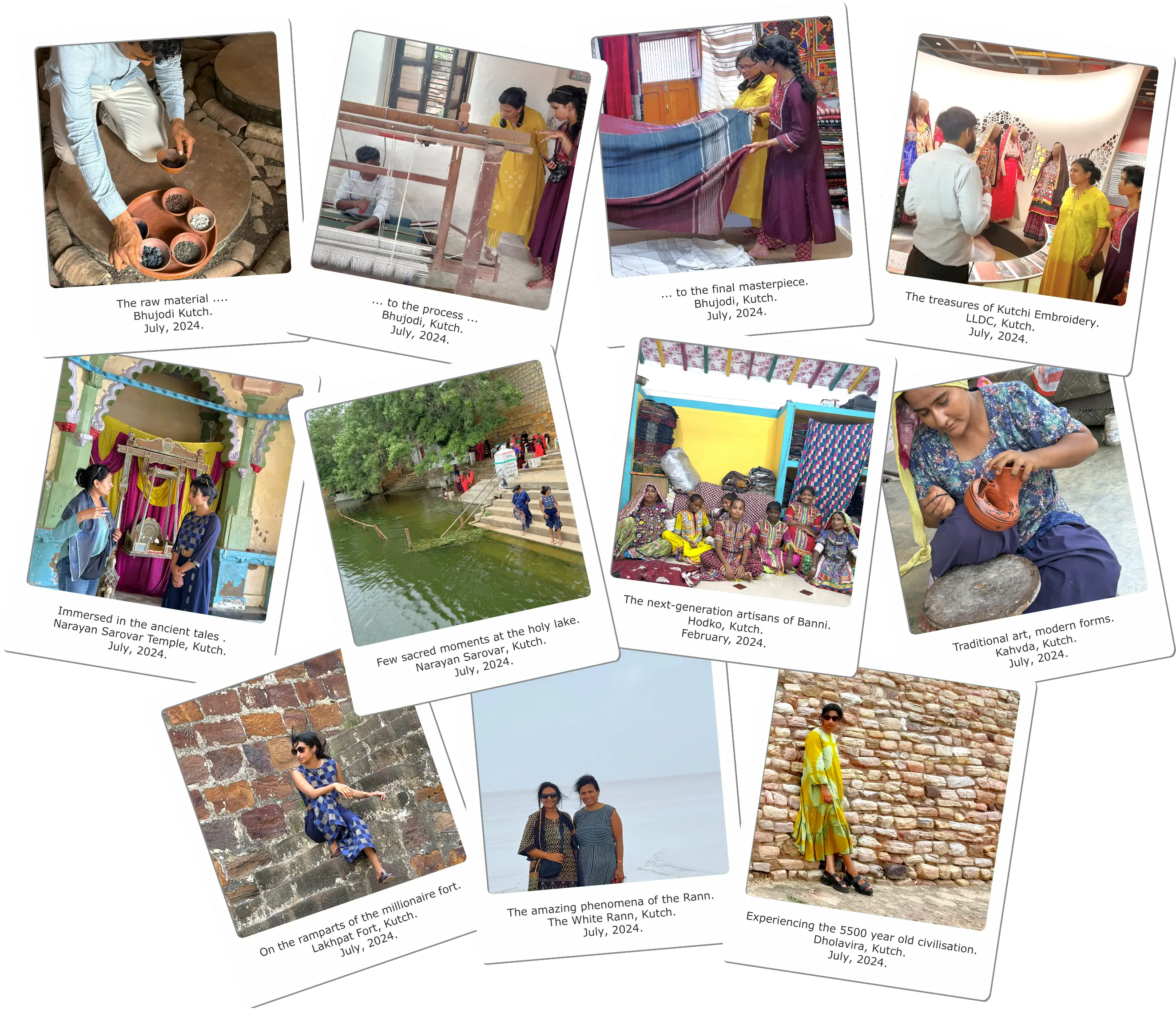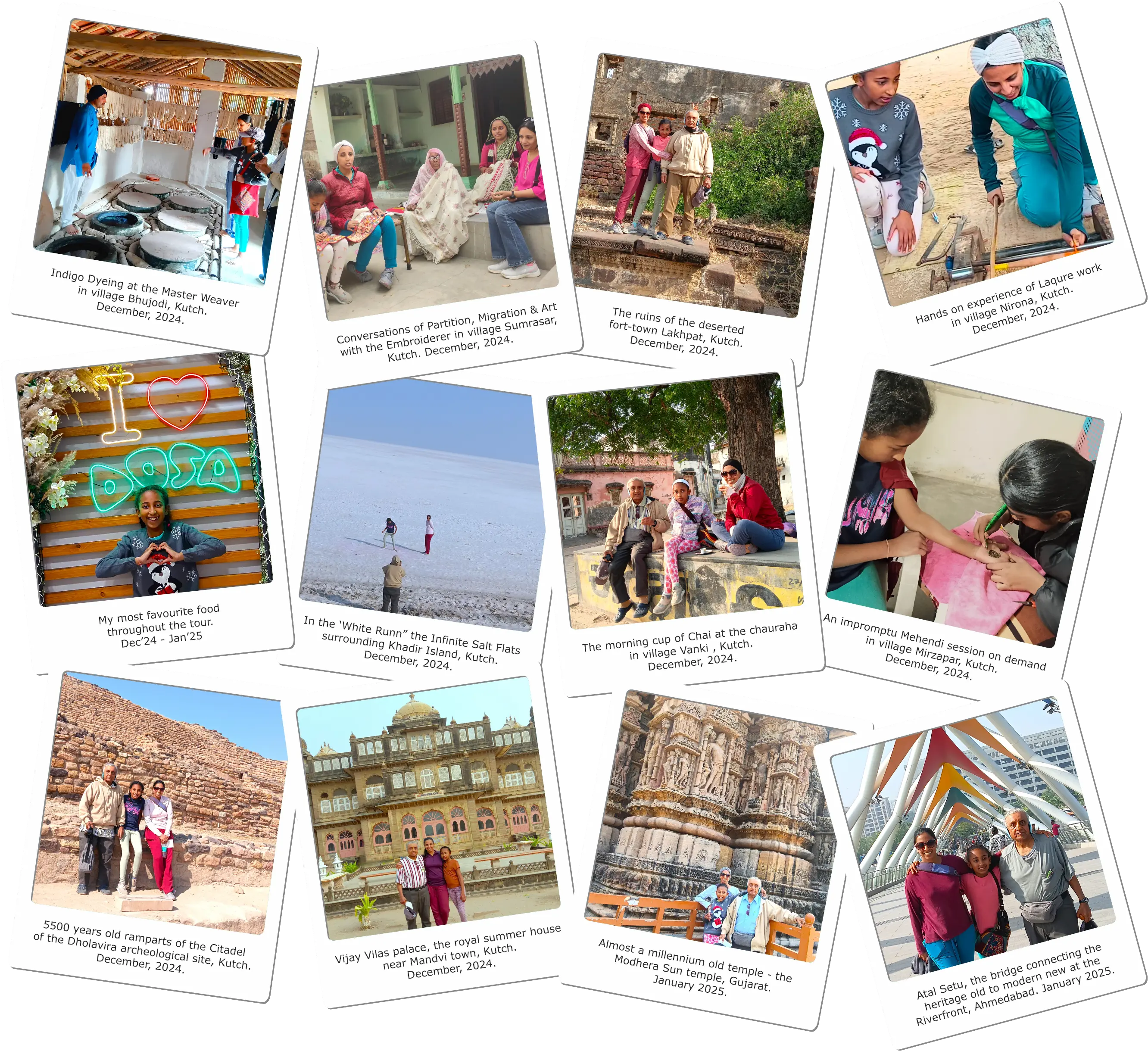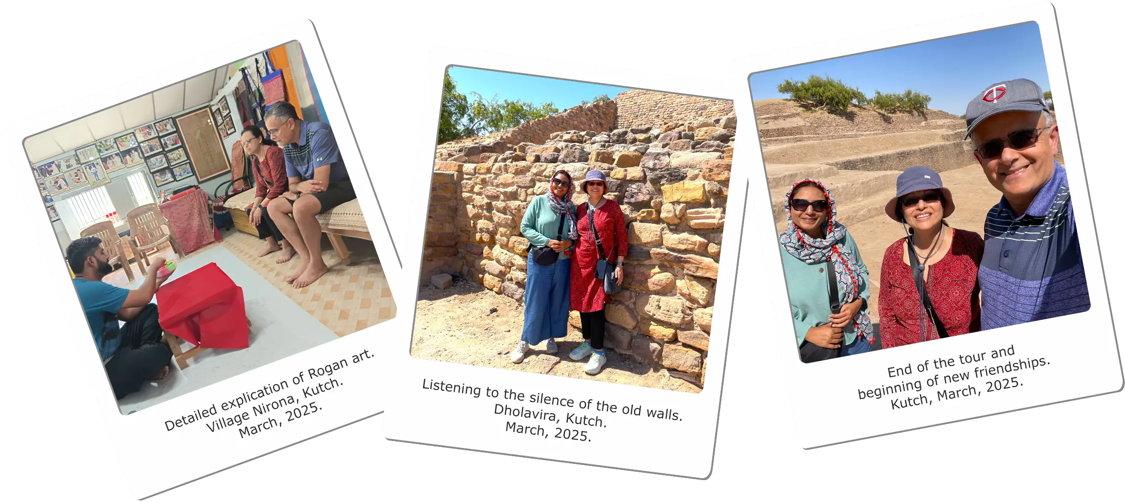 Being native of Kutch, we never knew the beauty lying beyond, and realized that we couldn't have learnt so much and experienced the diversity of Kutchh without Rashmi in this trip. In our childhood days we have read about the Indus valley civilization, and walking through this excavated site along with Rashmi and learning the intelligence behind its built, brought the visuals and divine architecture excellence of that ruling era in front of us. There seemed a lot more to it deep under the ground and we hope someday we will see this civilization completely restored. Furthermore exploring the Rann of Kutch, its heritage, culture, various forms of arts and crafts was enriching. We saw the real beauty of the Rann of Kutchh as we moved from east to north through the Majestic White Rann, the picturesque 'Royal Cenotaphs and Palaces', temples and its mythology, Village Stay, meeting the locals and learning the various arts first hand. Each artist seemed even more special, after learning the fact that the art was being followed through several generations. One can only say 'Wow'!! Much thanks to you for organizing this personalized, comfortable and memorable trip for us. We look forward to another tour down the lane.