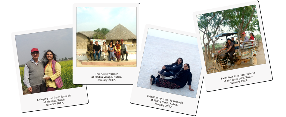 This trip to our native Kutch was a very cherished and memorable one for our family. We came across Rann Escapes through word of mouth by guests who have travelled with Rashmi in the past and recommended her service. Special thanks to Rashmi and Hemang for creating a very well planned custom itinerary for our group, all of whom had various special requests for diet and places to visit. We had to make some last minute changes to the itinerary and Rashmi was very flexible and able to accommodate our requests. All the accommodations we had were wonderful! We felt welcomed and were treated like family guests. We especially enjoyed staying at the beautiful farm stay in village Kharoi. Here, we were treated to some of our favourite typical desi meals – poha, bajar ji maani and dal bati to name a few. Rashmi also took us on a fun tour of the farm that was one of a kind!