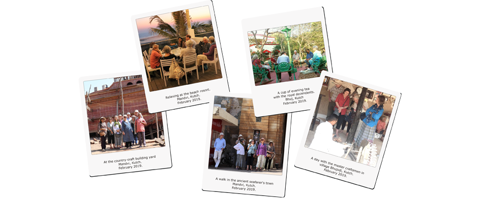 This trip was an intimate introduction to Kutchh - Up Close and Personal. There were lots of cherished moments - being face to face with the Maharao of Kutchh at Mandvi Palace, visiting a potter in the intimacy of his home, herds of camel in the Banni, organic folk hymns under the stars in the stark beauty of Hodka, a muster of peacocks in the beautiful lawns of our stay near Mandvi and many more...