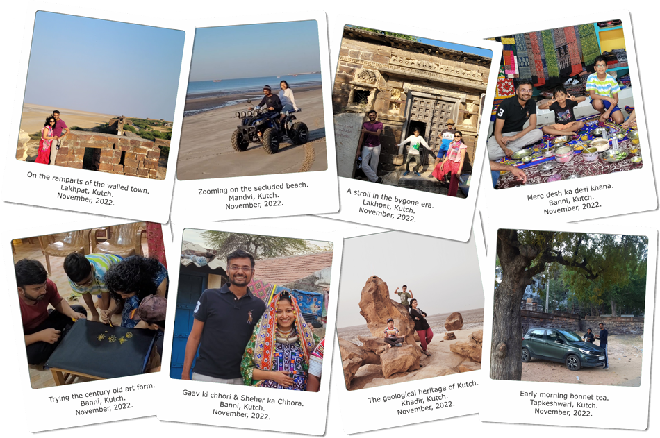 Right from the Village visits, to the Beach, to the Palaces, to the Indus Valley Civilisation site and of course the Karo Dungar, each and every experience was a big eye opener. When we started our tour we had never thought that Kutch has so much to offer and we feel like coming there again. Overall I would lilke to say "Kucth nahi Dekha toh Kutch nahi Dekha and Rashmi & Hemang ke saath Nahi Dekha toh bohot Kuch Nahi Dekha ………".